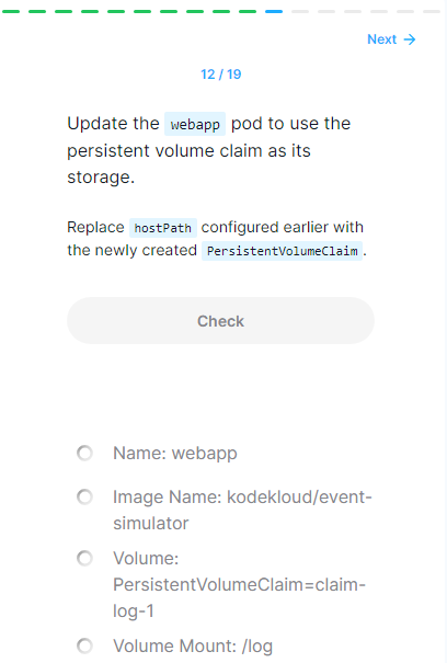 webapp pod를 pv쓰게 pvc사용해서 연결하라고함.