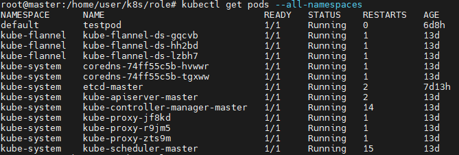 role resource를 가져와보면 현재 ns인 default것만 가져오고 옵션 --all-namespaces를 달아줘야 다 보인다.
