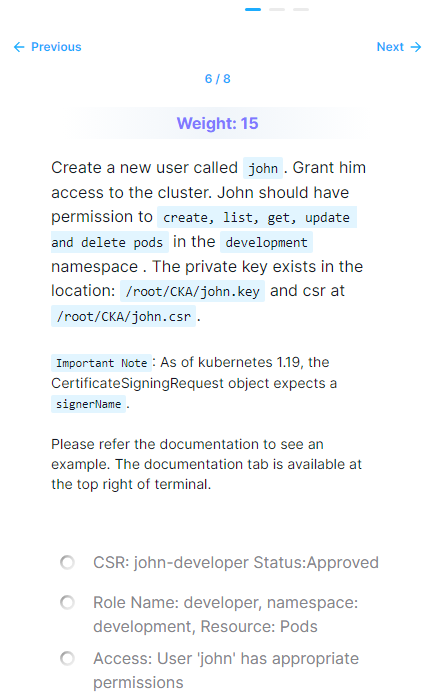 # 6 이거 안풀어도댐! role rolebinding은 중요한데 유저만드는건 안나옴. mock exam3에 클러스터롤나옴! 글고 문제 풀어놔도 안풀렸다고 떠서 엄청 짜증남