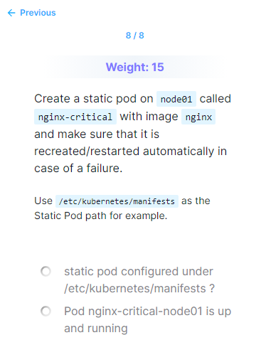 node01에 static pod를 만들라고함