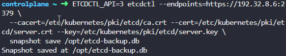 snapshot save /opt/etcd-backup.db