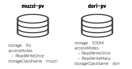 그냥 단순하게 hostPath타입으로 볼륨을 만들어준 pv를 사용했음.