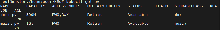 pvc가 bound됐다고 나오고, pv도 적절한 muzzi pv가 bound된걸 확인 할 수 있다.