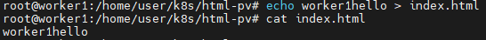 이랬으므로.. worker1노드에서 해당경로에 index.html파일을 만들어줘보자.