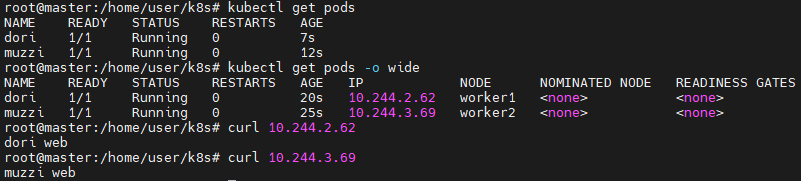 일단 muzzi랑 dori라는 web server pod들을 만들어줄거다.