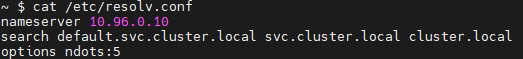 즉 이 testdns pod는 10.96.0.10이라는 아이피로 도메인아이피를 따온다는 소리임.