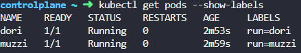 muzzi pod 에는 run=muzzi라는 라벨링이 되어있는걸 확인.