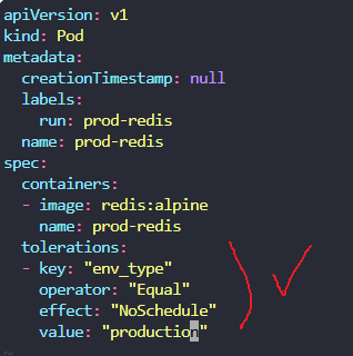 이제 prod-redis를 만들어줄건데 해당 pod에 toleration필드 만들어서 설정하면댐.