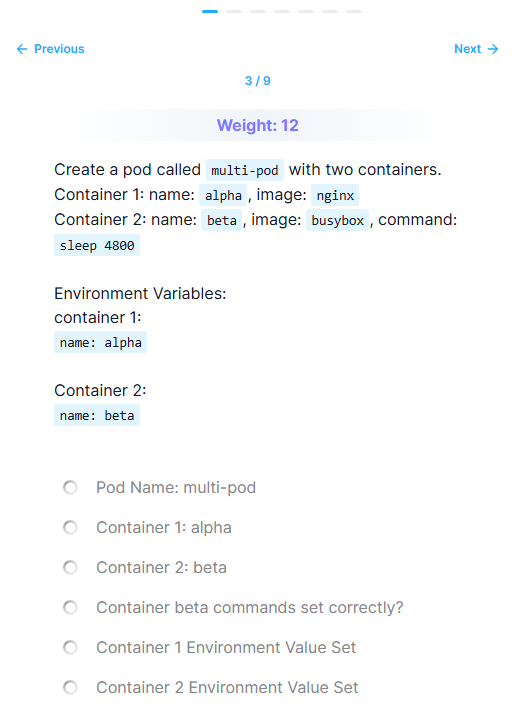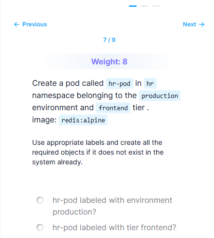 저런 조건의 pod를 만들라는데 CKA에 안나온다.