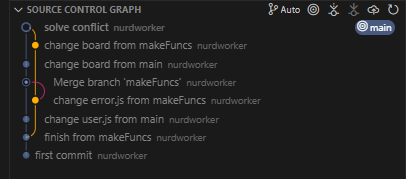 그리고 makeFuncs브랜치에서 코드를 수정한 후, main브랜치에서 merge를 한것이기 때문에 커밋 그래프를 그냥 합쳐준거임.