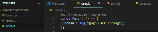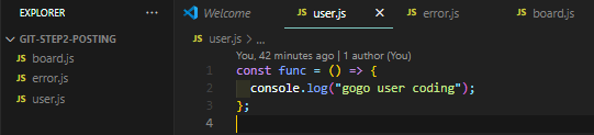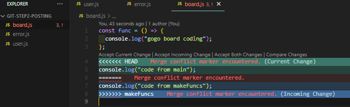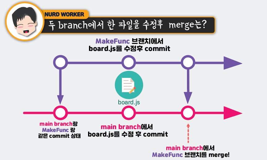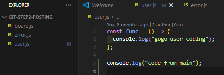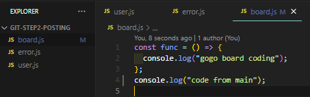 이제 board.js를 두 브랜치에서 수정을 할거다.