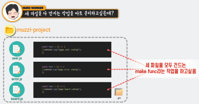 난 함수로 감쌀 작업을 만들거라 makeFuncs라는 브랜치를 만들어줬따.