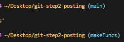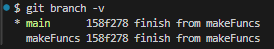 아까는 main브랜치에서 commit을 한 상태에서 makeFuncs 브랜치를를 만들어줬다.