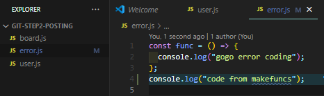 makeFuncs브랜치는 error.js코드를 수정하고 commit한다.