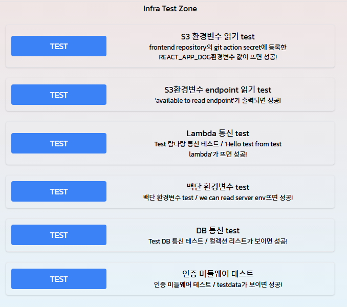인프라팀원분들이 배포하면서 제대로 연결이되었는지, 환경변수가 제대로 읽혀졌는지 등을 테스트 하실 수 있었고 실제로 활용하셨습니다~