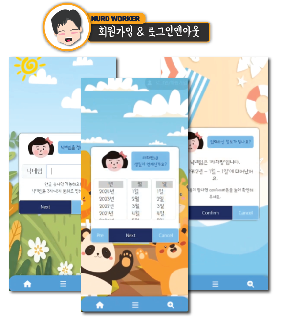 nurd worker는 어플리케이션의 첫 화면이라 이미지작업과 디자인에 치중했습니다.