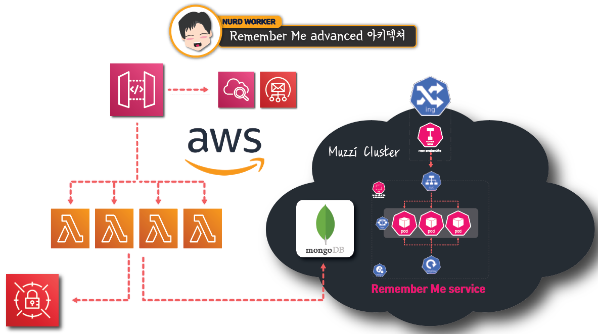 현재 배포된 remember me 프로젝트 advanced버전의 아키텍쳐입니다.