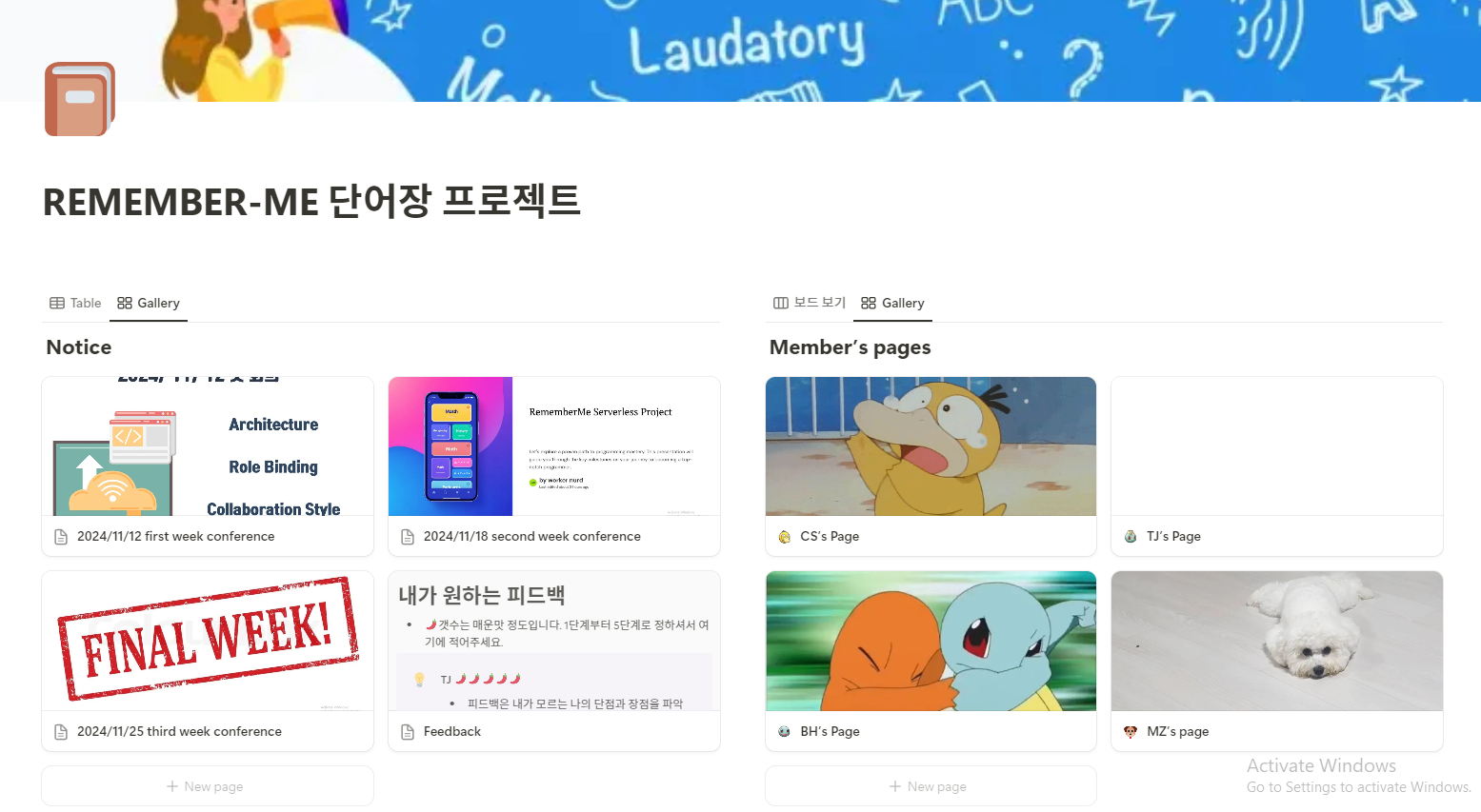 프로젝트가 급하게 시작이 되어서 노션제작을 후딱 한다음 회의하면서 사용방법을 알려드렸어요