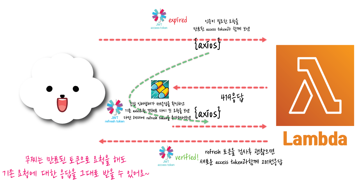 몇몇 서비스들은 로그아웃을 하게 한다거나 버벅거림이 있겠지만 nurd worker는 사용자 편의성을 중요시하므로 이렇게 사용자가 access token이 만료된걸 전혀 느끼지 못하게 인증기능을 구현을 하였습니다.