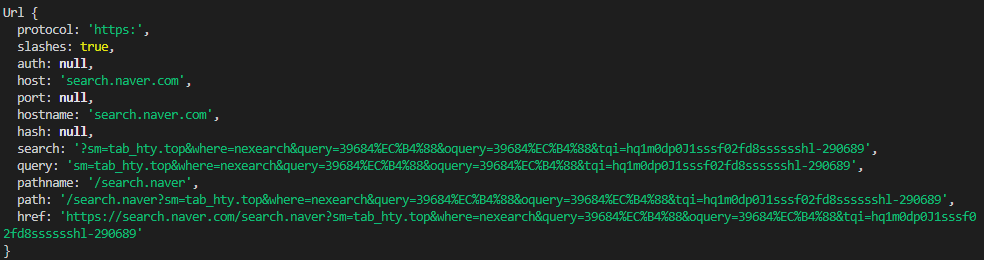 url parse객체함수에 url주소를 넣어주고 콘솔로 출력해보면
