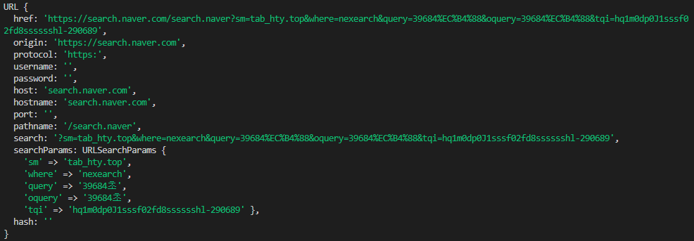 WHATWG방식의 특이한점은 search 키값 부분을 searchParams라는 객체로 또 반환해준다.